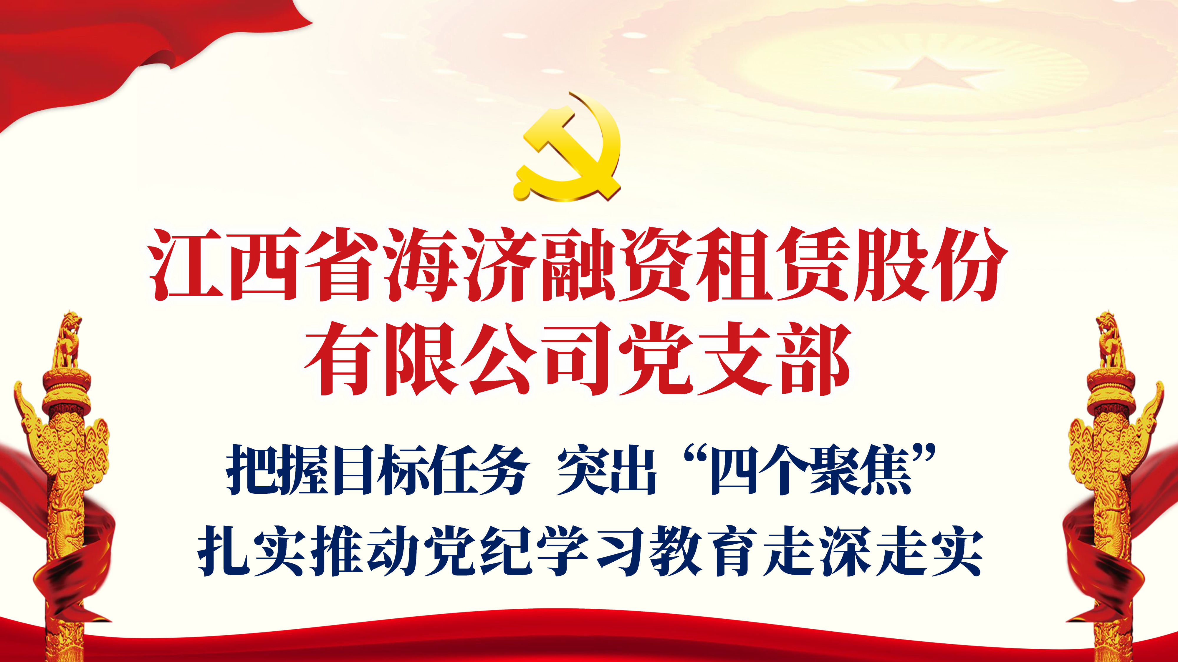 黨紀(jì)學(xué)習(xí)教育開展以來,江西省海濟(jì)融資租賃股份有限公司黨支部精心部署、迅速行動(dòng),牢牢把握“學(xué)紀(jì)、知紀(jì)、明紀(jì)、守紀(jì)”目標(biāo)任務(wù),突出“四個(gè)聚焦”,確保黨紀(jì)學(xué)習(xí)教育入腦...