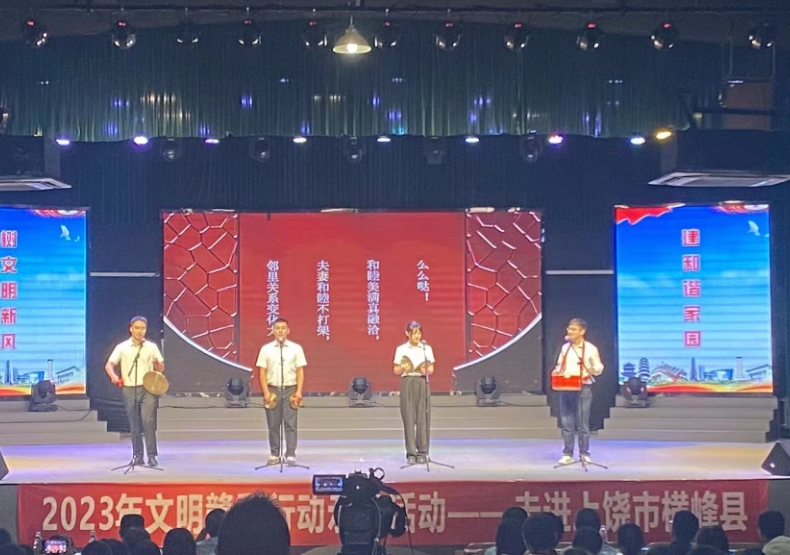 ????? 活動現(xiàn)場,各參與單位以“文明新風(fēng)、移風(fēng)易俗”為主題開展文藝匯演,通過歌曲演唱、情景劇宣講、旗袍秀、詩歌朗誦、舞蹈、樂器演奏等形式,展現(xiàn)了豐富多彩的文化生活和積極向上的精神面貌,現(xiàn)場氣氛十分熱烈。同時,在表演過程中還穿插了互動環(huán)節(jié)和頒獎環(huán)節(jié),在普及文明新風(fēng)的同時,為觀眾送上了精美的獎品,并為兩位道德模范頒發(fā)了愛心資金。