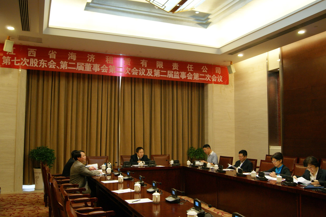 ???? 2012年4月11日,江西省海濟(jì)租賃有限責(zé)任公司在江西前湖迎賓館召開了第七次股東會(huì)及第二屆董事會(huì)、監(jiān)事會(huì)第二次會(huì)議。